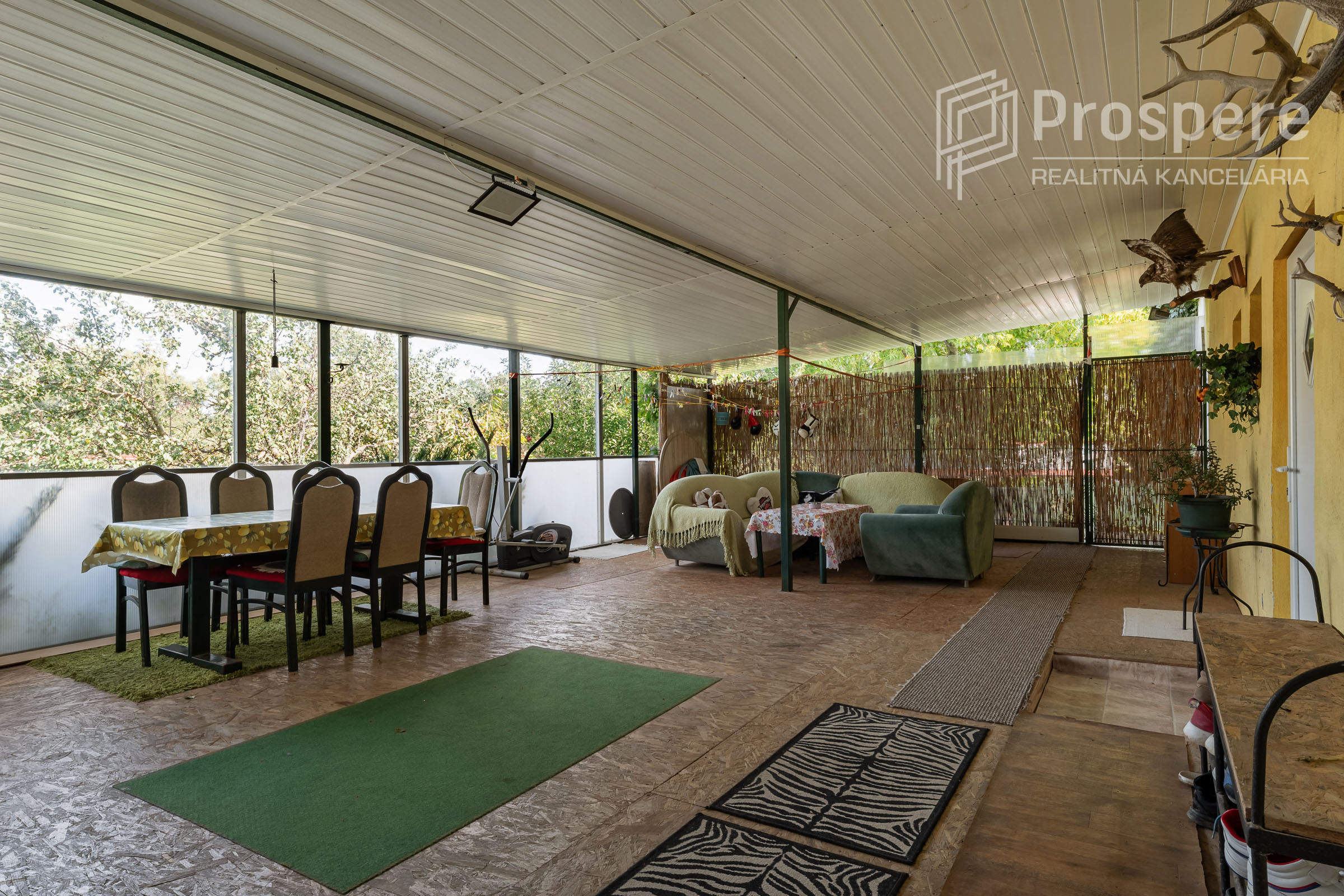 K nehnuteľnosti prislúcha aj veľká krytá terasa 56m2 a udržiavaný pozemok s altánkom a bazénom, ktorý poskytuje dostatok súkromia a priestoru na oddych.